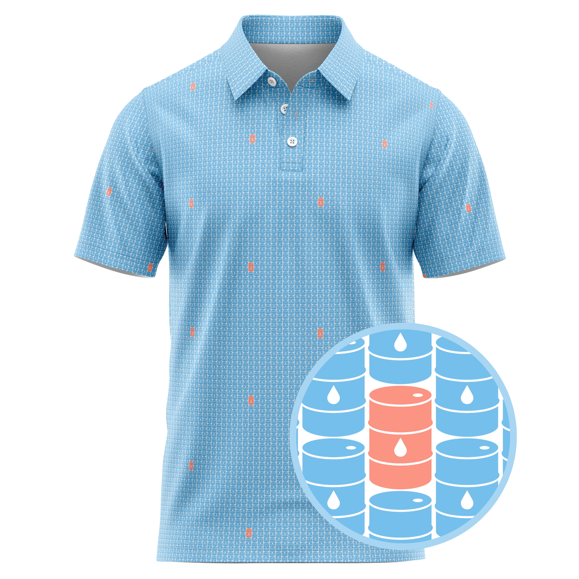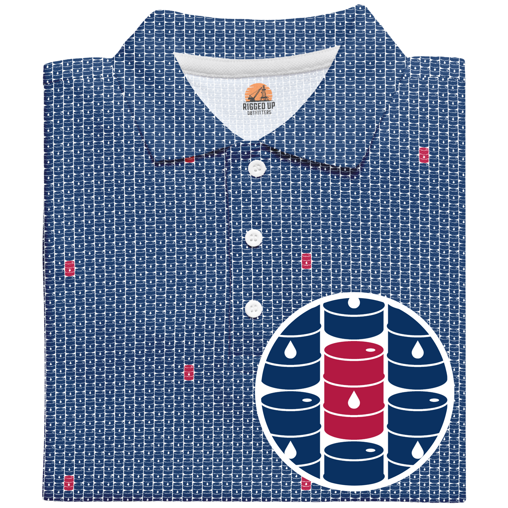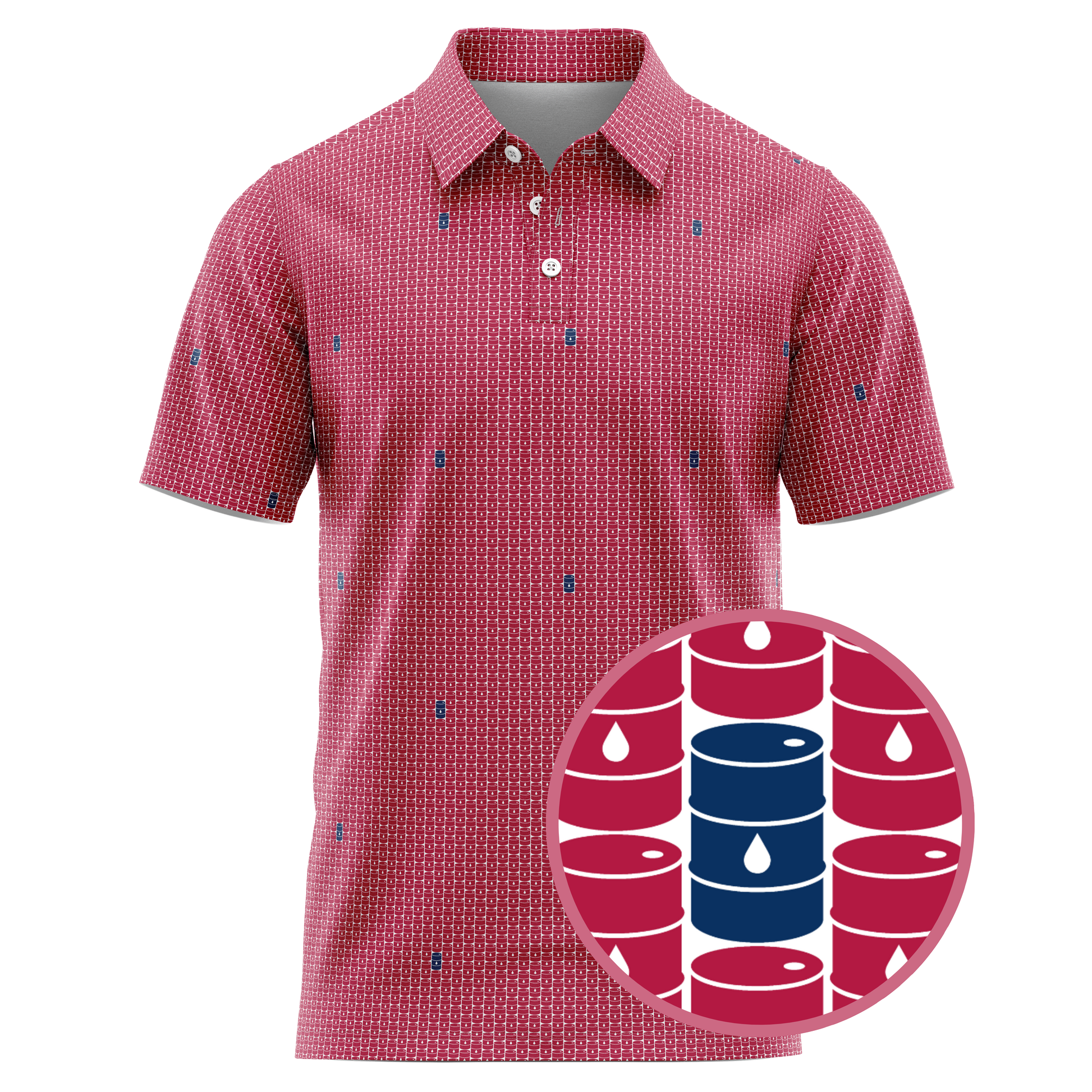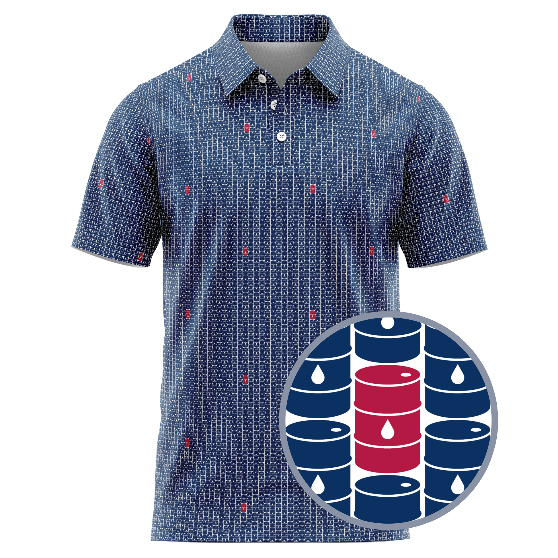 Step onto the fairway with the swagger of West Texas wildcatters in the Basin Barrels Golf Polo—where energy meets elegance. This design isn’t just slick—it’s crude in the coolest way possible.