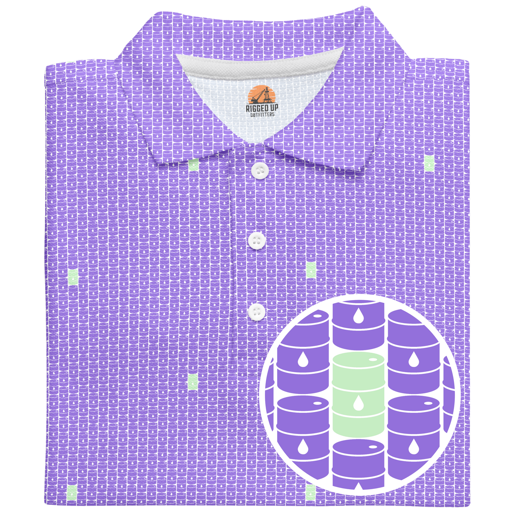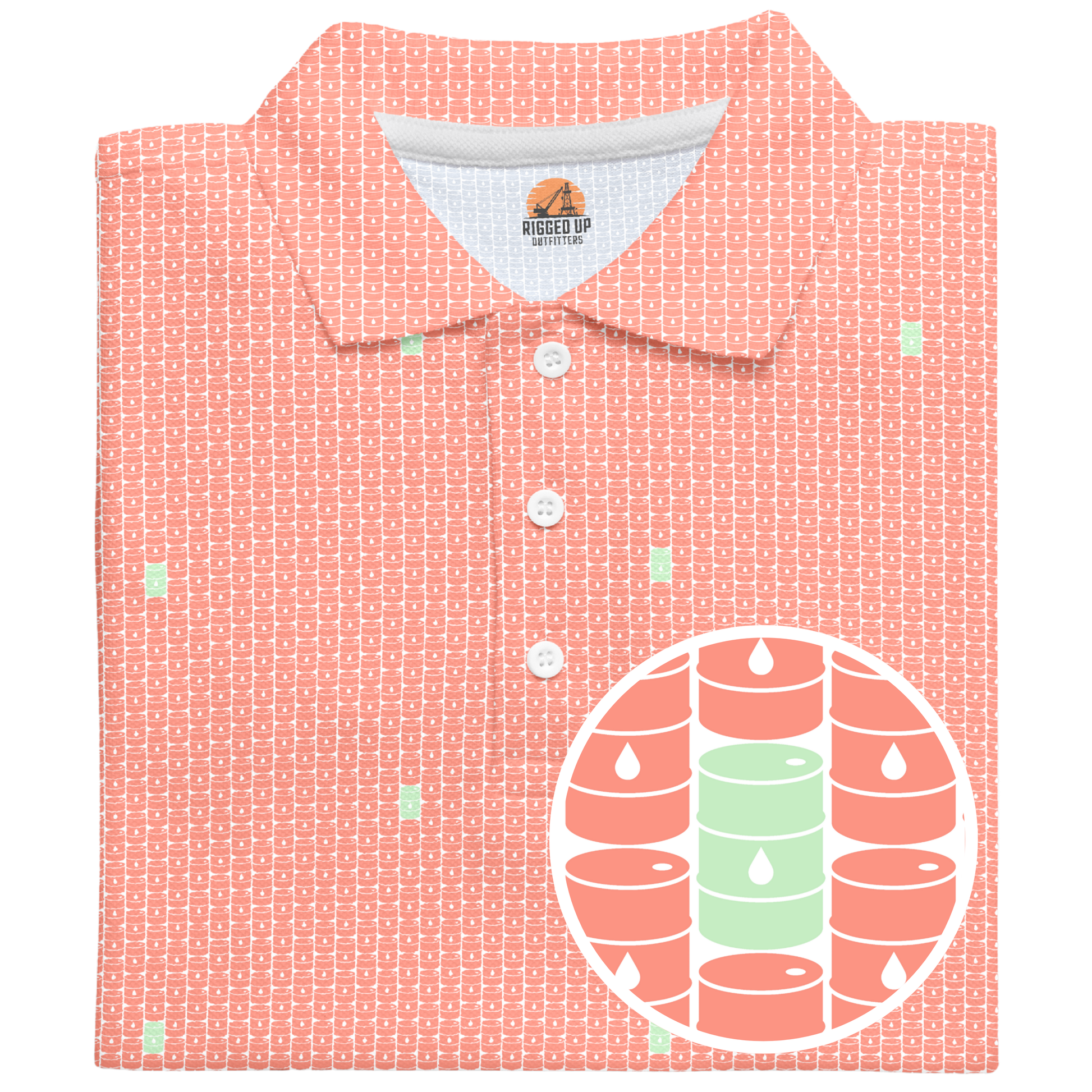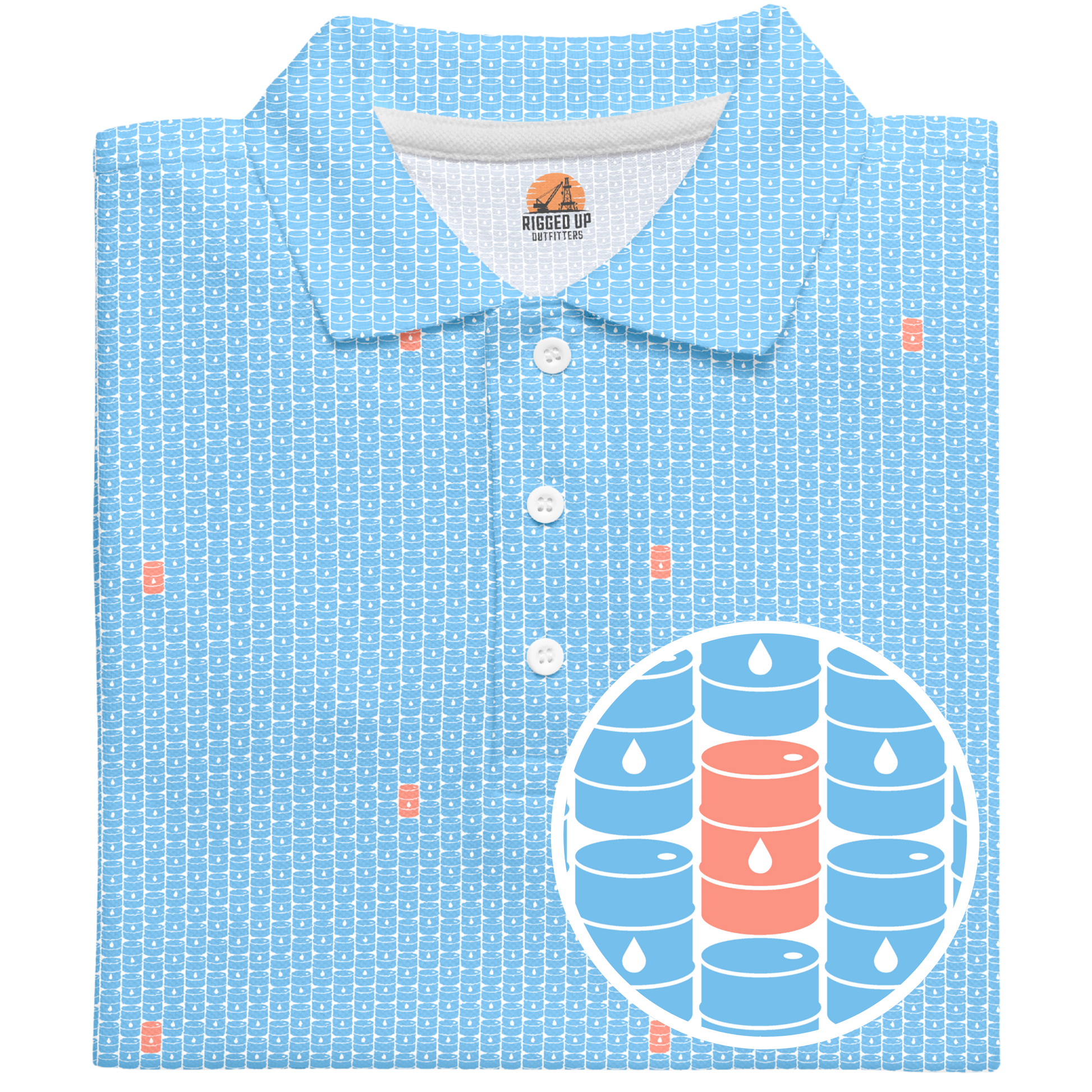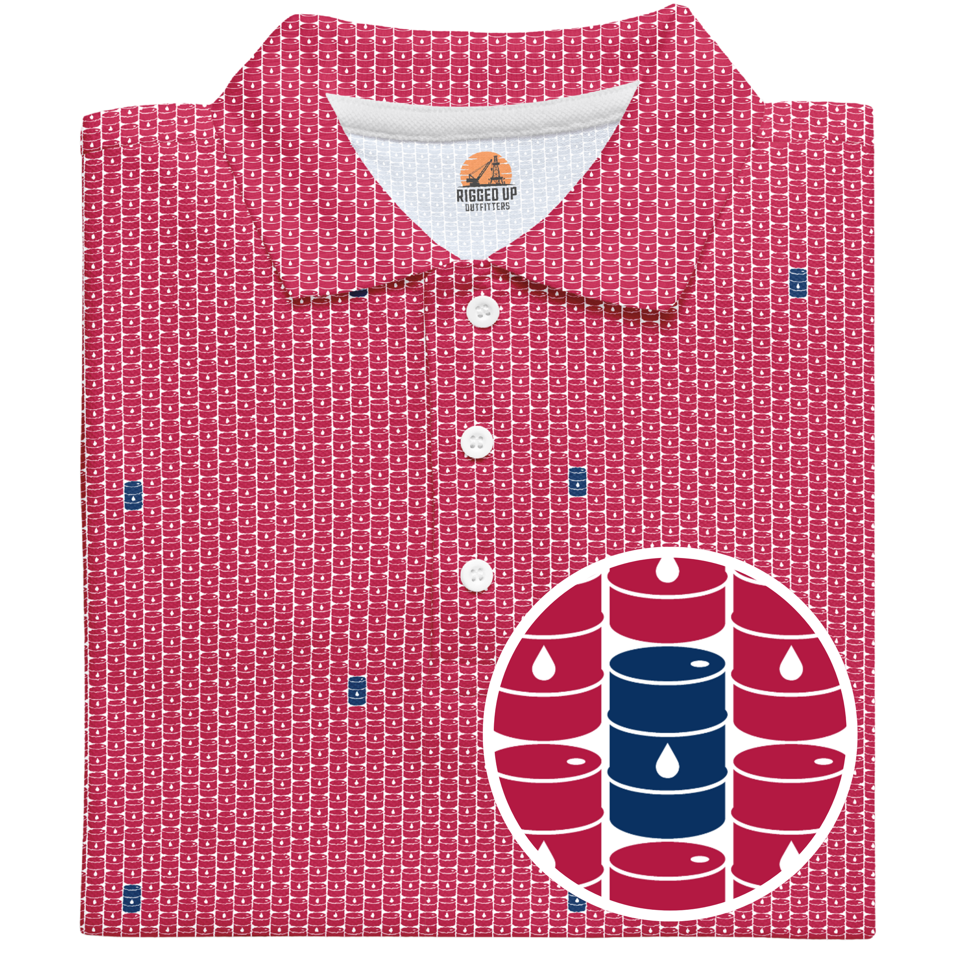 Step onto the fairway with the swagger of West Texas wildcatters in the Basin Barrels Golf Polo—where energy meets elegance. This design isn’t just slick—it’s crude in the coolest way possible.