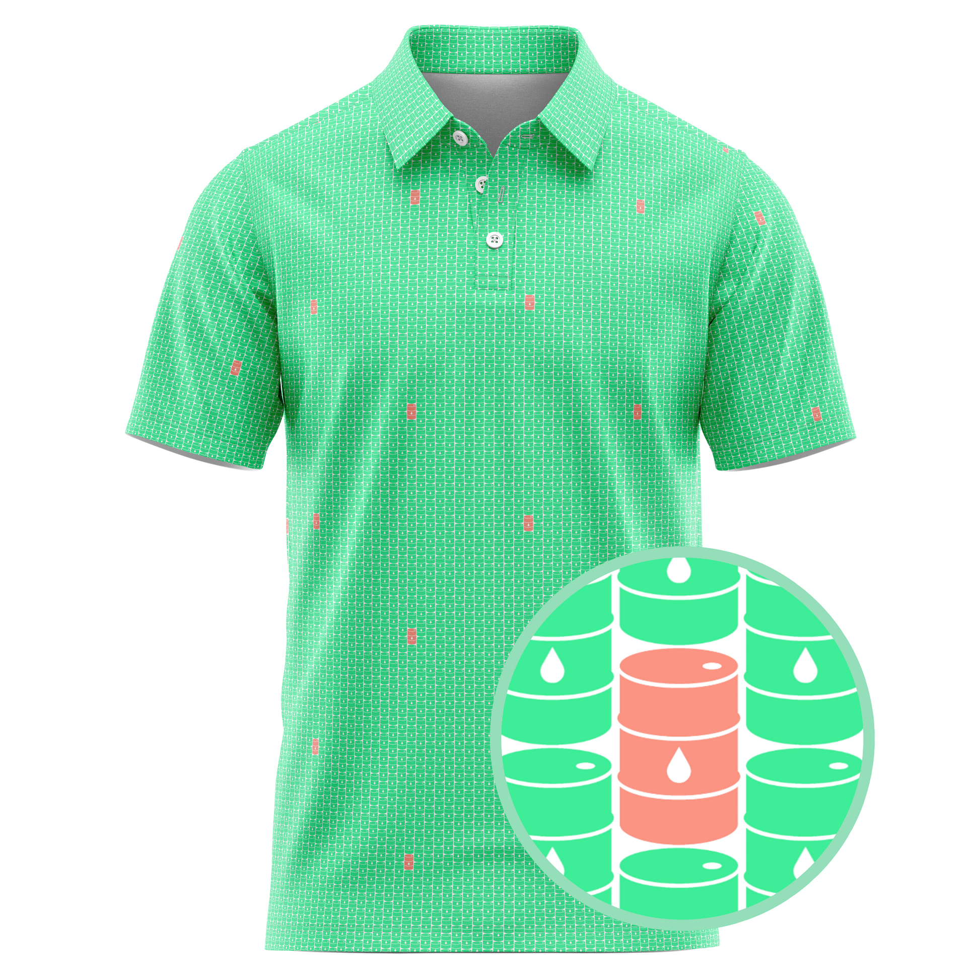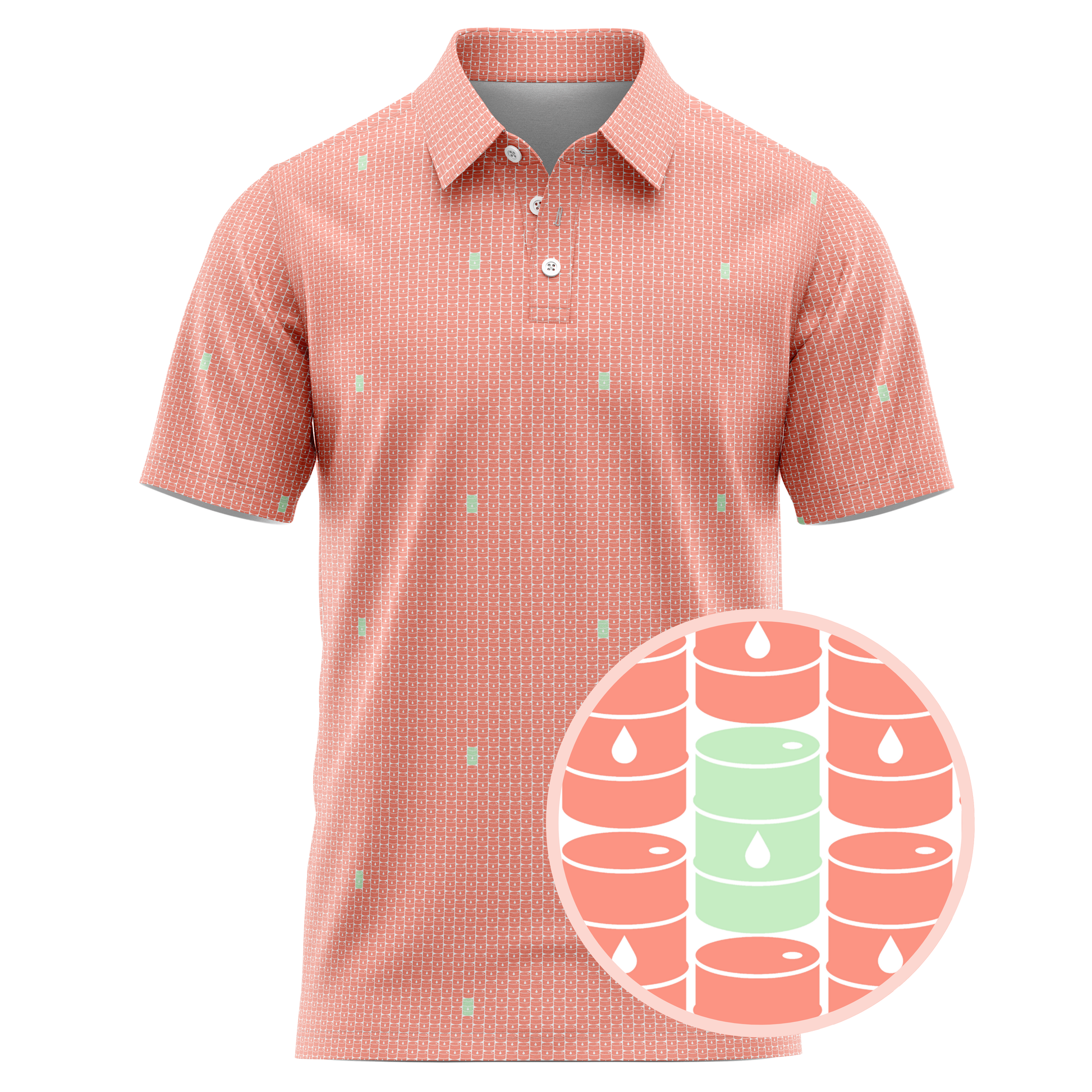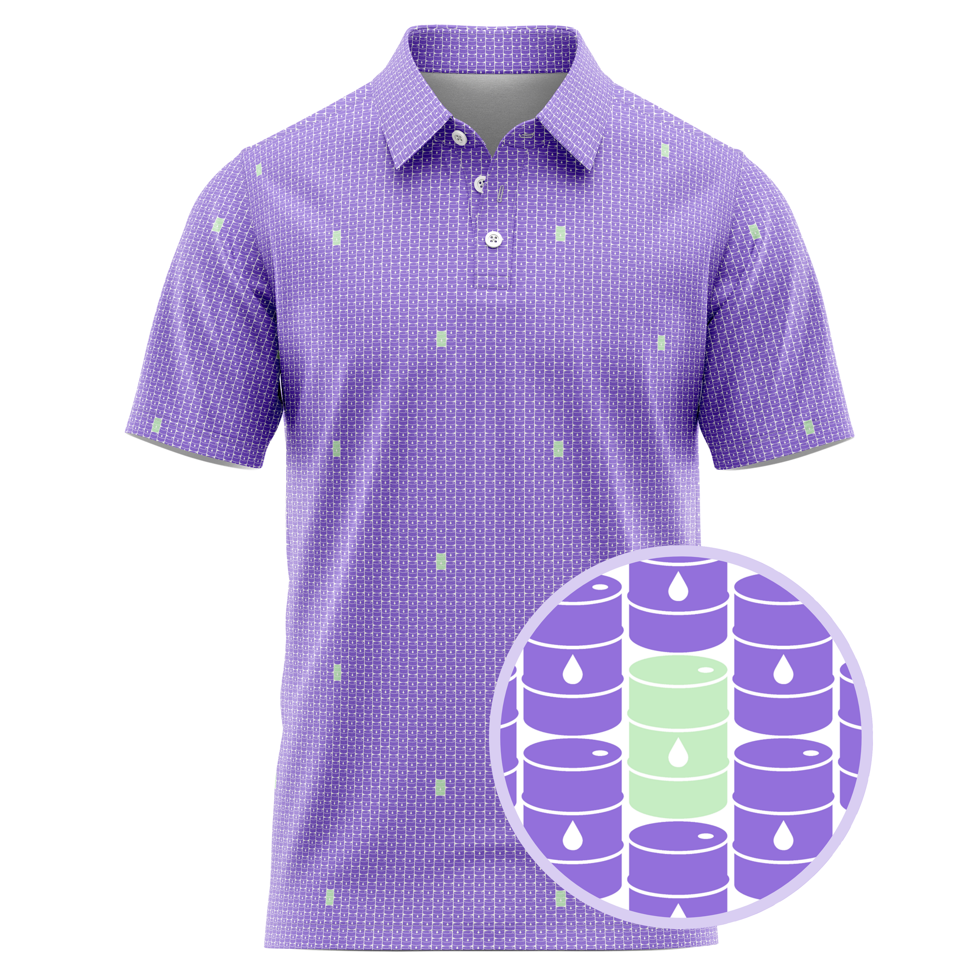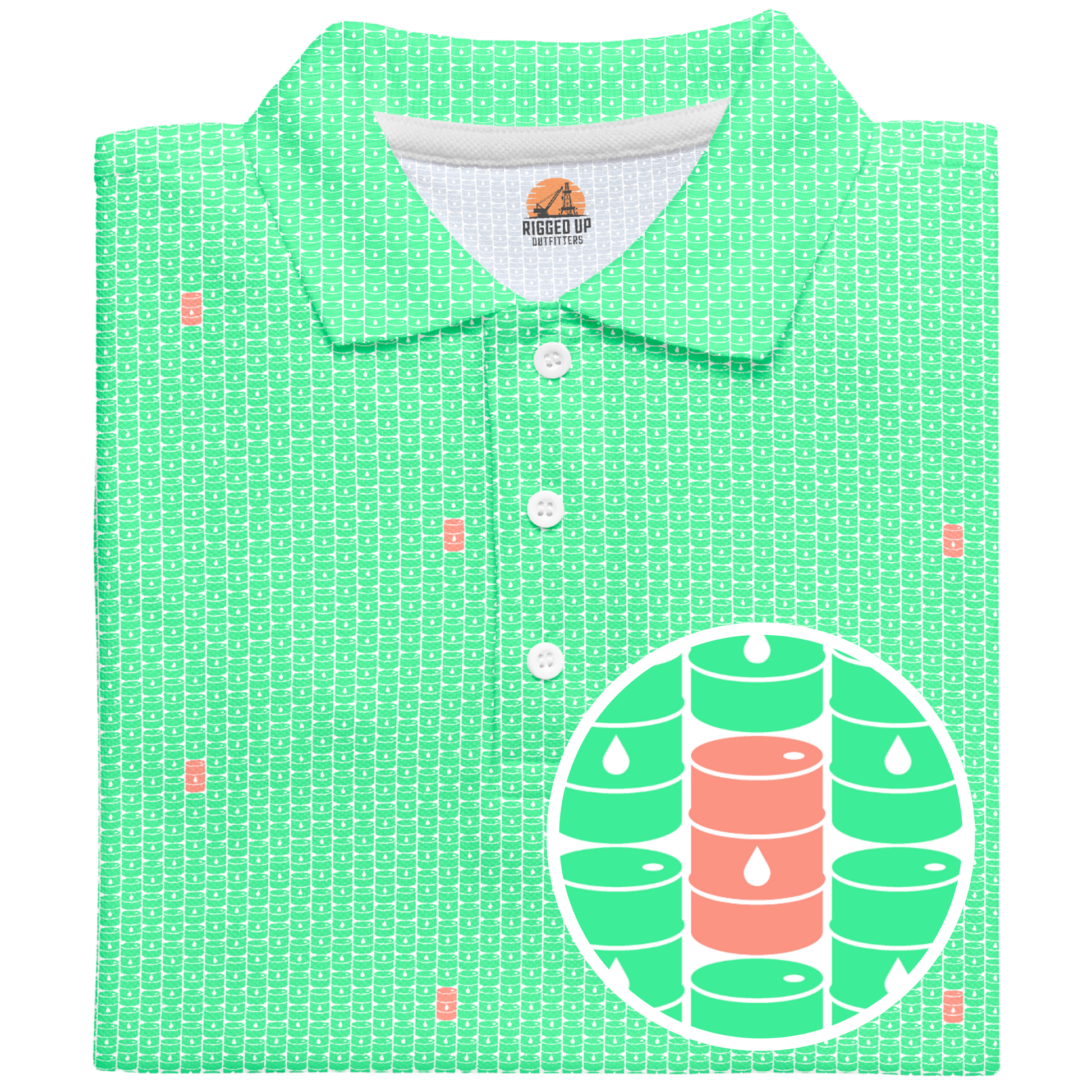Step onto the fairway with the swagger of West Texas wildcatters in the Basin Barrels Golf Polo—where energy meets elegance. This design isn’t just slick—it’s crude in the coolest way possible.