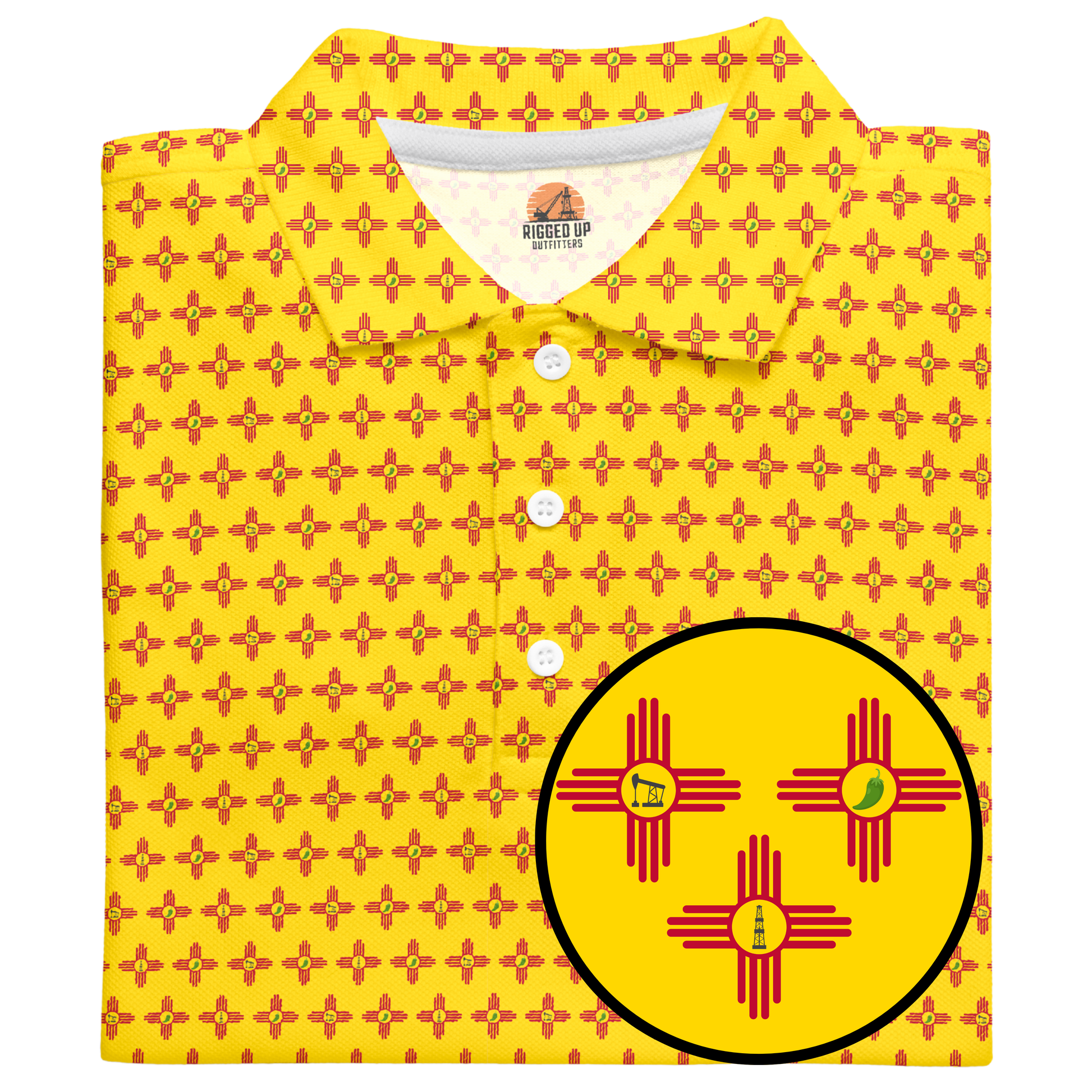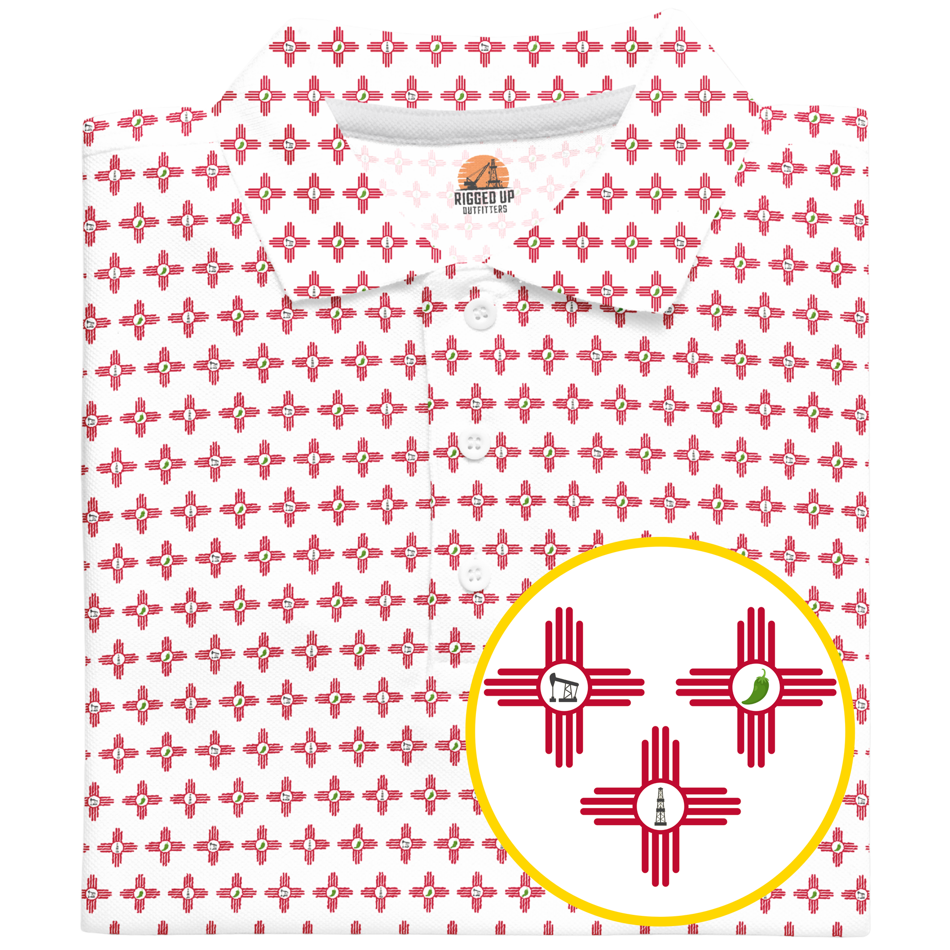 Say hello to the Green Chile Special Golf Polo—where Southwest pride meets big energy. This isn't just a shirt; it’s a walking tribute to the Land of Enchantment, featuring a bold mash-up of the iconic red Zia sun symbol, juicy green chiles, and gritty oil field gear.